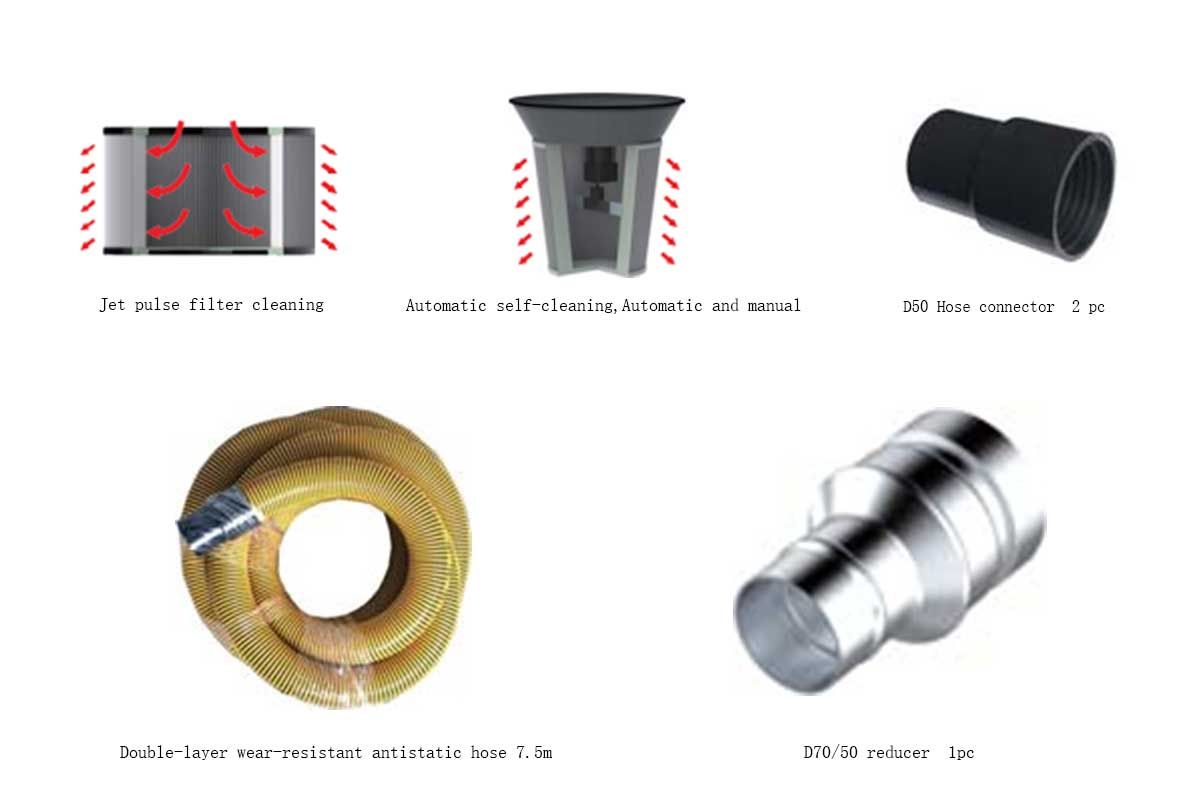La cubeta de filtro revestida de fibra de poliéster importada viene equipada de serie, que es adecuada para condiciones de trabajo que requieren un trabajo continuo, partículas de polvo pequeñas y una gran cantidad de polvo. Es especialmente adecuado para condiciones de trabajo como el pulido de suelos y el granallado. La altura de la máquina se puede ajustar, lo que es conveniente para el transporte de tránsito. Contáctenos